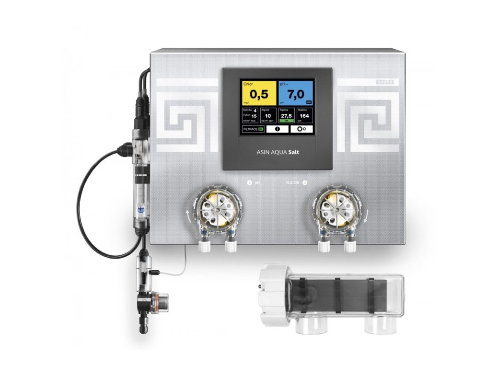 Systém Asin Aqua Salt CLF od českého výrobce Aseko je moderní automatika pro komplexní údržbu bazénové vody, jejíž hlavní předností je bezchlórová dezinfekce (CLF = Chlorine Free). Je ideální volbou pro uživatele, kteří jsou citliví na chlór, mají kožní problémy (ekzémy, alergie) nebo preferují pocit z koupání v co nejpřirozenější vodě bez typického chlórového zápachu.