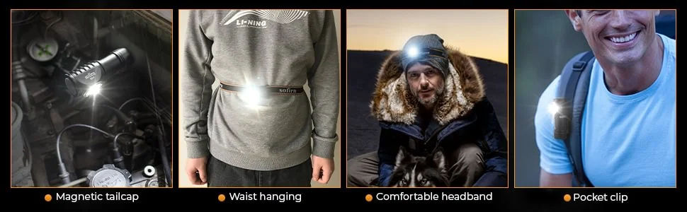 4. Pravoúhlá EDC svítilna: Čelovku lze sejmout z čelenky a použít ji jako praktickou svítilnu. S klipem (Koupit samostatně) pro použití bez použití rukou.