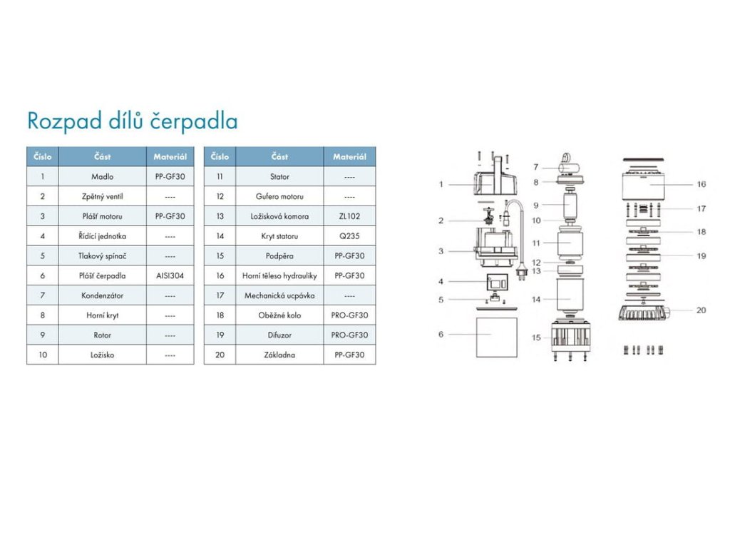 - Tělo čerpadla vyrobeno z nerezové oceli AISI 304