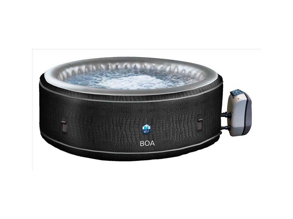Mobilní nafukovací vířivá vana Boa je velmi pohodlná. Nabízí dostatek prostoru pro 5 až 6 osob. Na první pohled zaujme její luxusní vzhled připomínající krokodýlí kůži. Vířivka disponuje motorem, který zajišťuje ohřev, bublinkovou masáž a také filtraci.