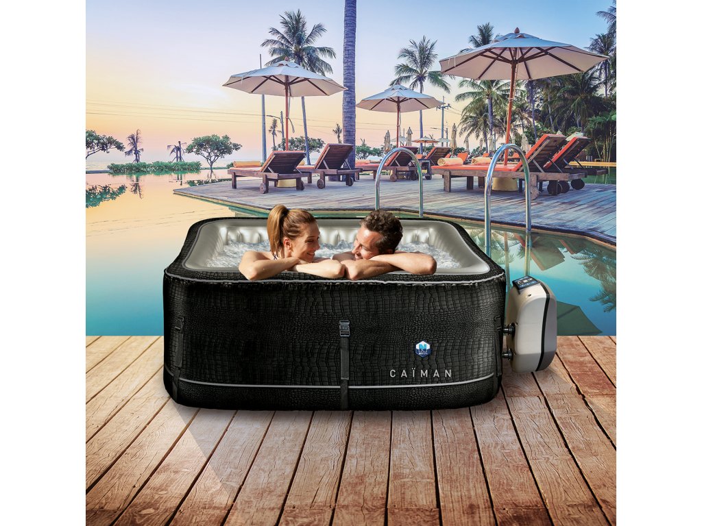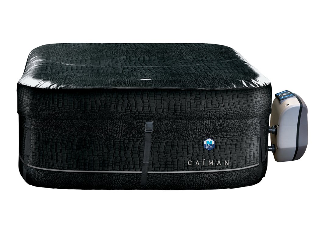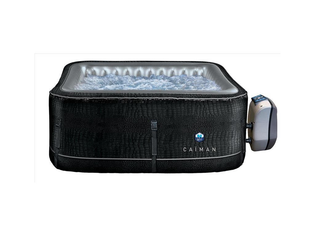 Tato čtverhranná nafukovací vířivá vana Caiman je ideální pro 4 osoby. Má hospodárnou motorovou jednotku, která zajišťuje ohřev vody, filtraci i masáž vzduchovými bublinkami.