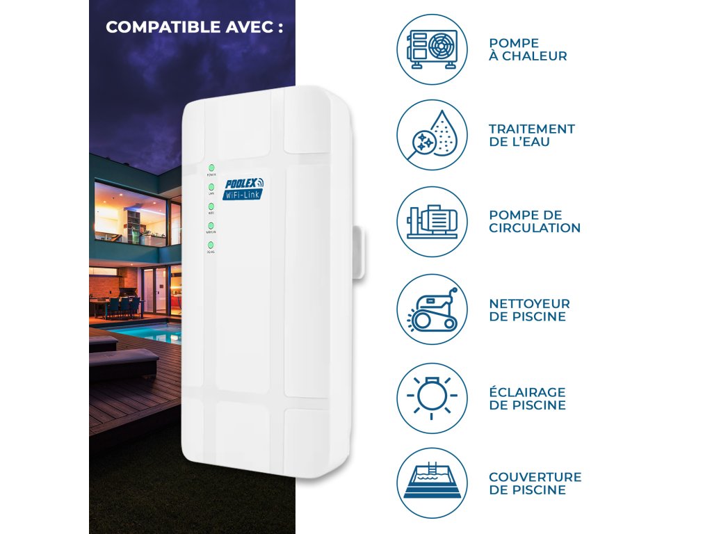 Protože se vaše potřeba připojit mnoho zařízení k WiFi neustále vyvíjí, Poolex reaguje pomocí WiFi-Link, která vám umožní připojit až 25 zařízení současně.