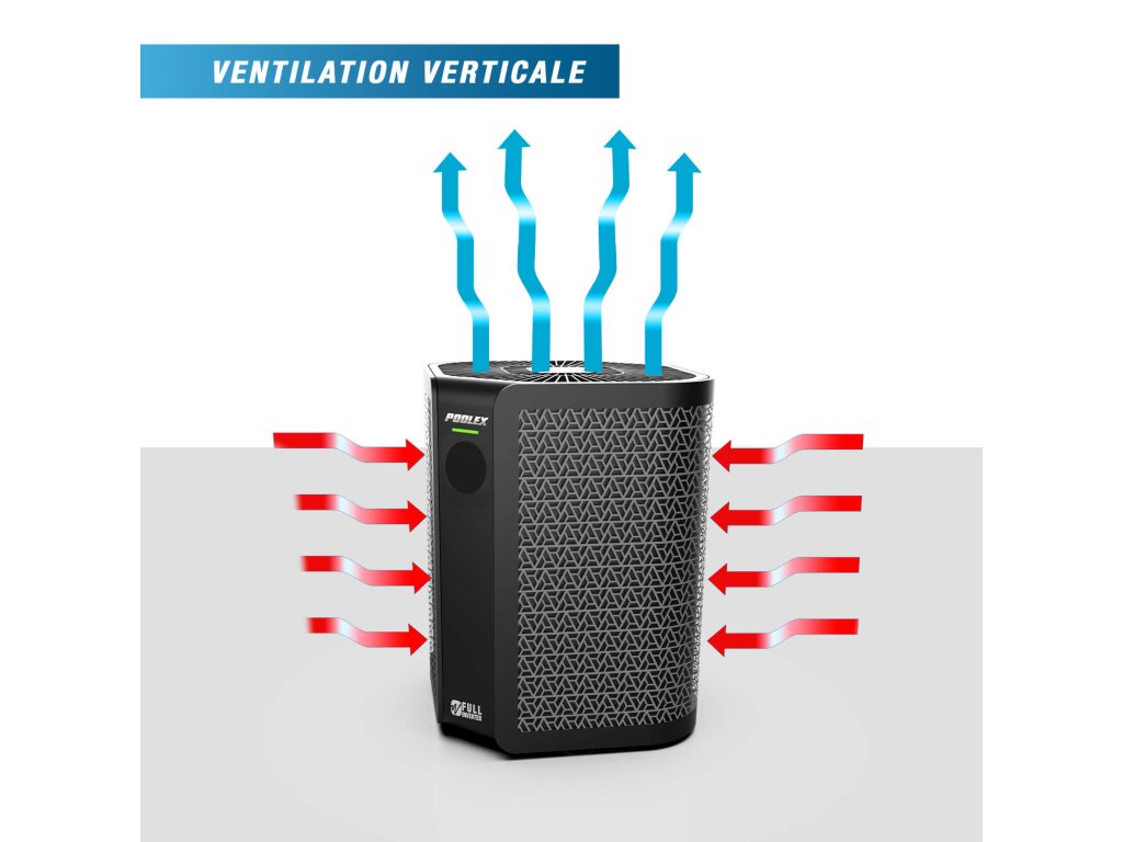 Vertikální a vybavený foukáním nahoru vyžadujícím zmenšenou evakuační plochu, může být instalován v omezeném prostoru.